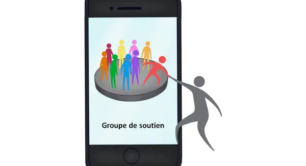 Une procédure régulièrement utilisée dans les interventions consiste à produire un feedback normatif personnalisé. Il s’agit de situer les croyances ou comportements de l’utilisateur par rapport à des pairs de même âge et/ou sexe. Image du smartphone par Adrien Coquet de TheNounProject, contenu du smartphone inspiré de l’application « Drink Less »